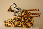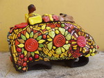 2005In Durban zie je veel Indische invloeden. Veel markten, winkels en ook restaurants zijn vaak Indisch.Deze taxi is samengesteld met stoffen uit de indische winkel.
